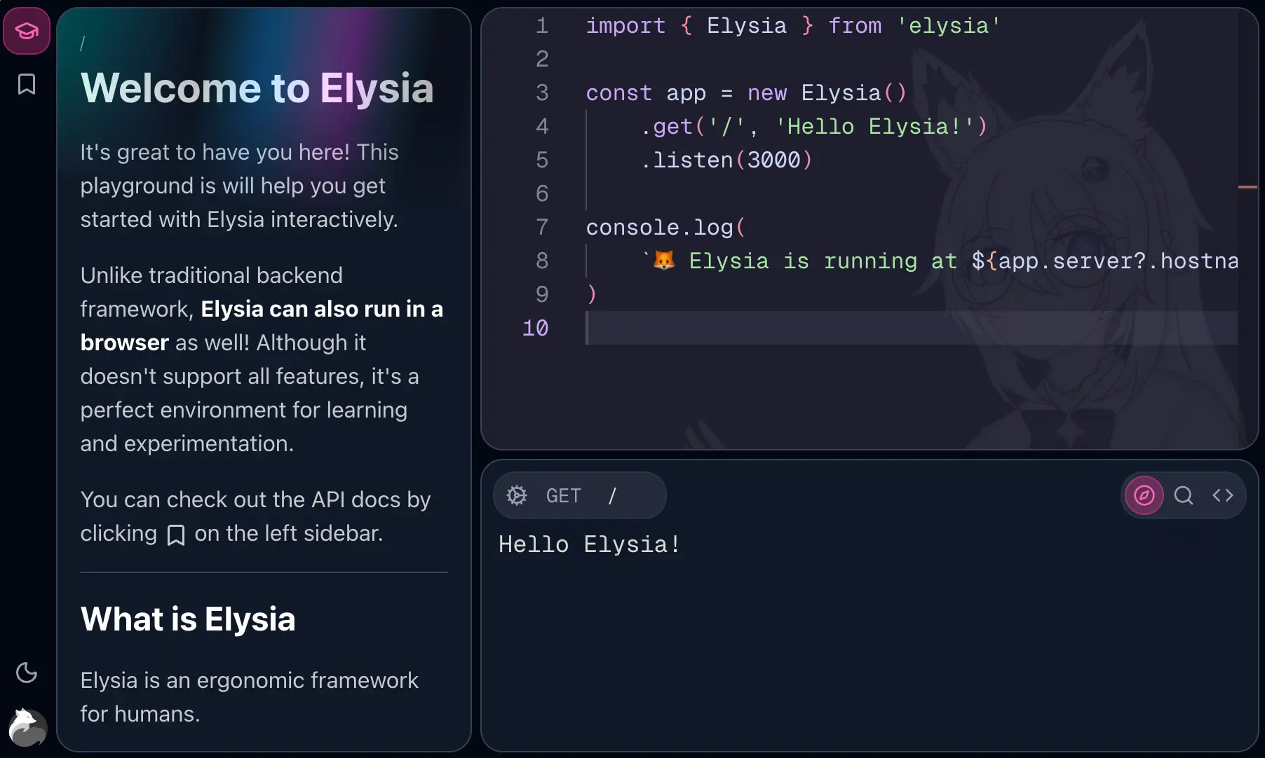 An interactive experience to learn Elysia with IDE, playground, and more.